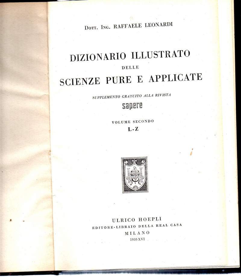 DIZIONARIO ILLUSTRATO DELLE SCIENZE PURE E APPLICATE | Libri antichi e moderni | Leonardi Raffaele