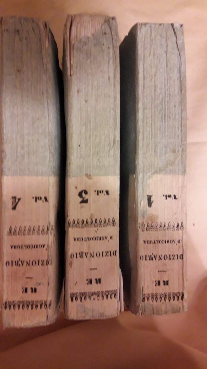 DIZIONARIO RAGIONATO DI LIBRI D'AGRICOLTURA, VETERINARIA, E DI ALTRI RAMI D'ECONOMIA CAMPESTRE AD USO DEGLI AMATORI DELLE COSE AGRARIE, E DELLA GIOVENTU'- 3 TOMI | Libri antichi e moderni | Re Filippo