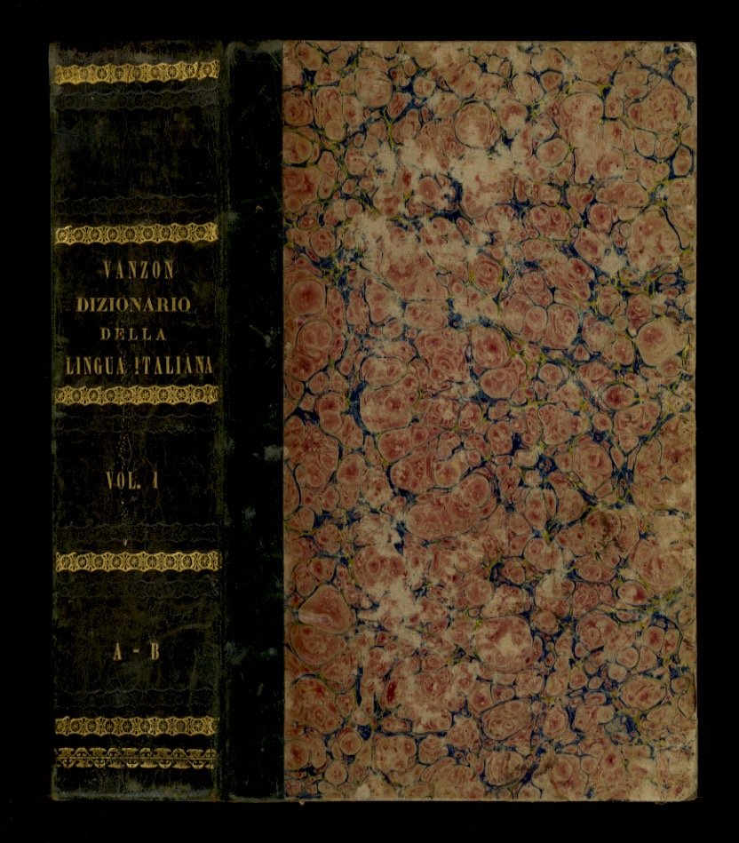 Livorno, dalla Tipografia di Gio. Sardi e Figlio, 1828, in-8, mezza pelle verde coeva con titolo e filettature oro al dorso, piatti marmorizzati, pp. (8), 732, (4). All'inizio del volume: "Breve cenno biografico sulla vita di Carlo Ant. Vanzon (nato in Olanda ed indirizzato alle lingue dal padre commerciante, rientrò in Italia, stabilendosi prima a Roma e poi a Livorno, ove divenne insegnante). Strappo restaurato al frontespizio, con perdita di qualche lettera; cerniera anteriore allentata. Solo un volume sugli 8 (7 + Appendice) editi nel 1828-42.
