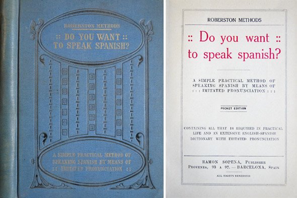 Do you want to speak spanish?. A simple practical Method of speaking spanish by means of imitated pronunciation. Pocket edition. And in extensive English-Spanish Dictionary with imitated pronunciation. | Libri antichi e moderni | Roberston Methods.