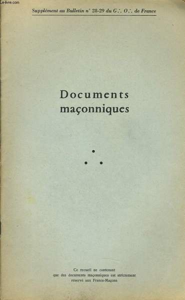 DOCUMENT MACONNIQUES (suppl�ment au Bulletin n�28-29 du G.O de France) : Constitution du Conseil de l'Ordre, Assembl�e G�n�rale 1961, Discours prononc� par le F. Jacques Mitt�rrand | Libri antichi e moderni | Maurice Pannetier Directeur De La Publication