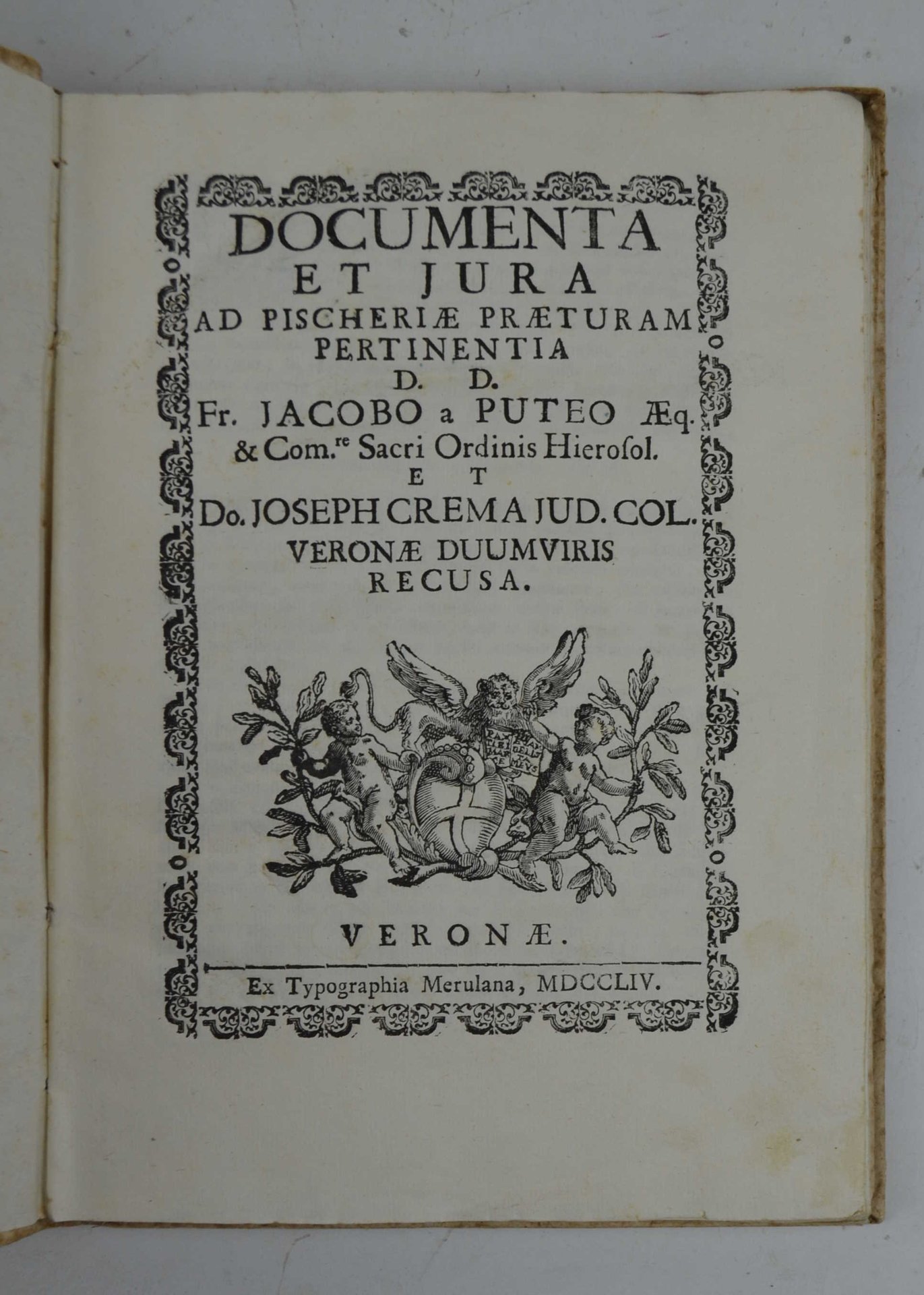 Documenta et jura ad Pischeriae praeturam pertinentia D.D. Fr. Jacobo a Puteo... et Do. Joseph Crema Jud Col. Veronae Duumviris recusa.