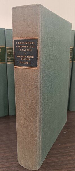 AA.VV. Documenti Diplomatici Italiani. Seconda Serie 1870/1896. 27 Volumi. , La Libreria dello Stato 1870, Documenti Diplomatici Italiani. Seconda Serie 1870/1896.Opera in 27 Volumi. Molto buono (Very Good) Volumi usati proveniente da collezione privata .La copertina riporta evidenti tracce d'uso. Le pagine risultano lievemente imbrunite dal tempo. All'interno in ottime condizioni. <br> <br> <br> <br>