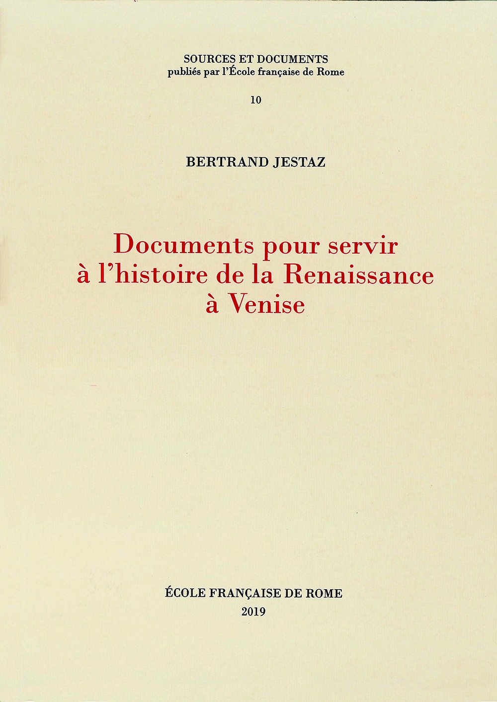 Documents pour servir à l'histoire de la Renaissance à Venise, Roma, Ecole Française de Rome, 2019