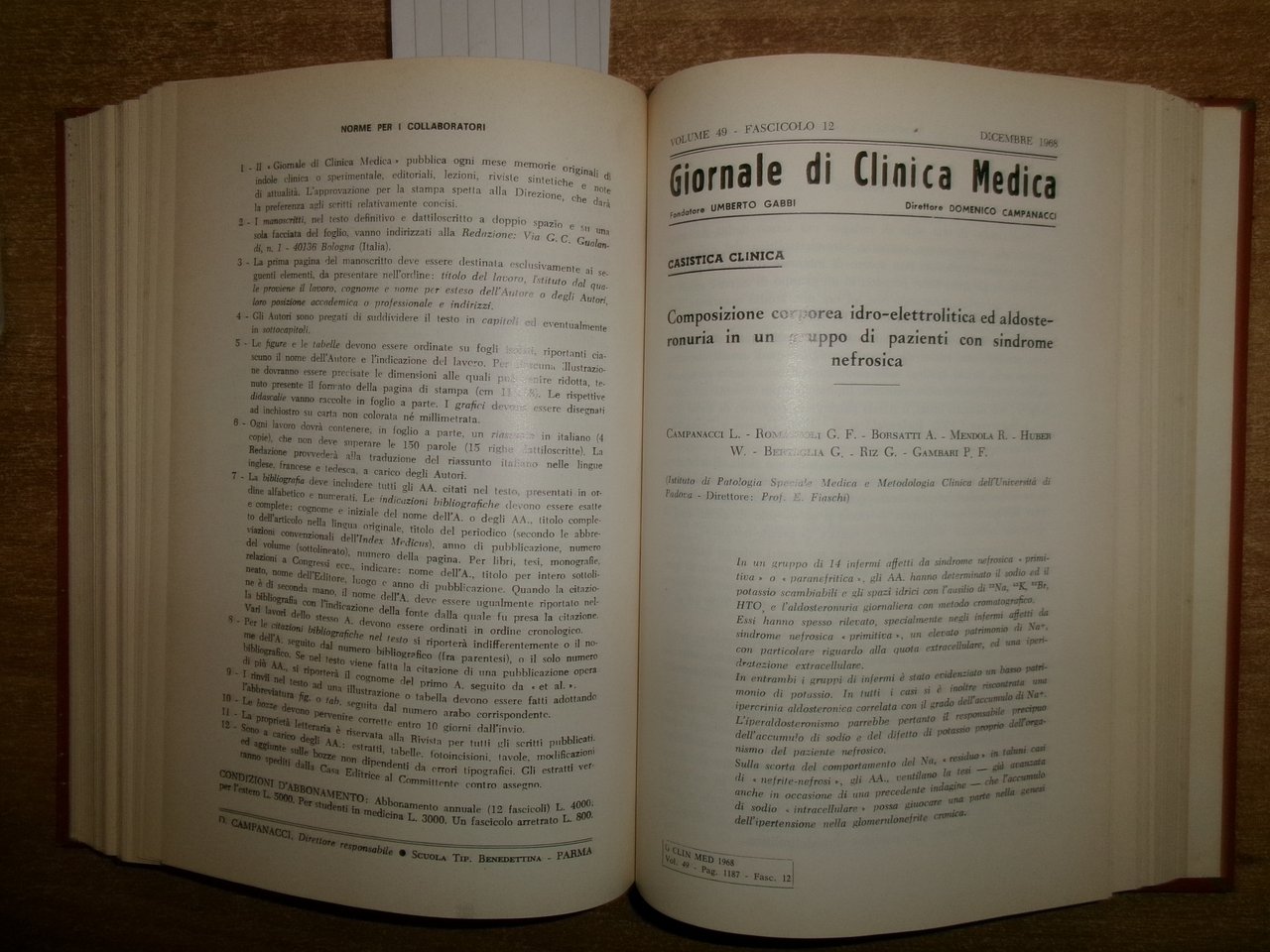 DOMENICO CAMPANACCI. Giornale di Clinica Medica 1968 12 fascicoli legati assieme