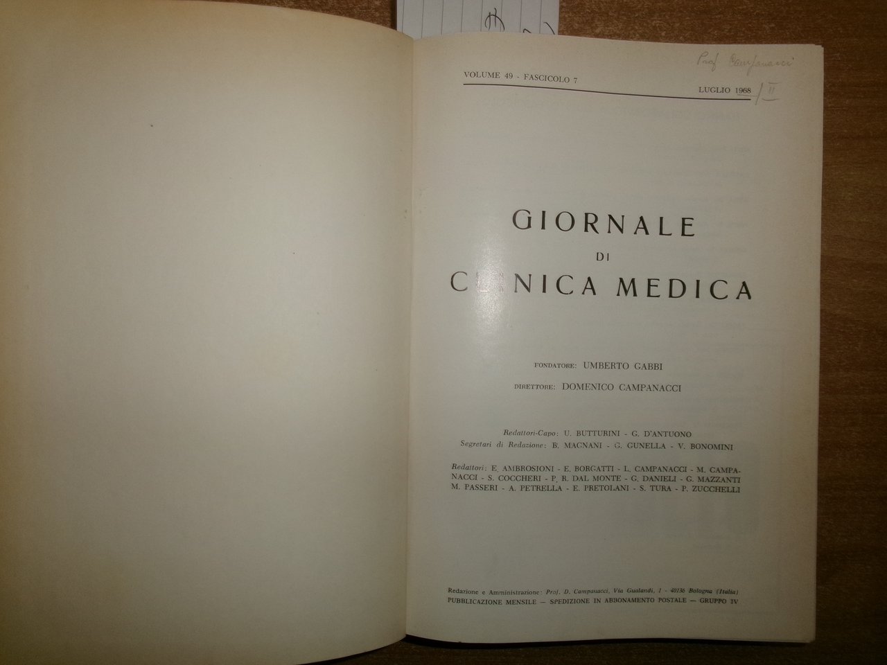 DOMENICO CAMPANACCI. Giornale di Clinica Medica 1968 12 fascicoli legati assieme | Libri antichi e moderni |