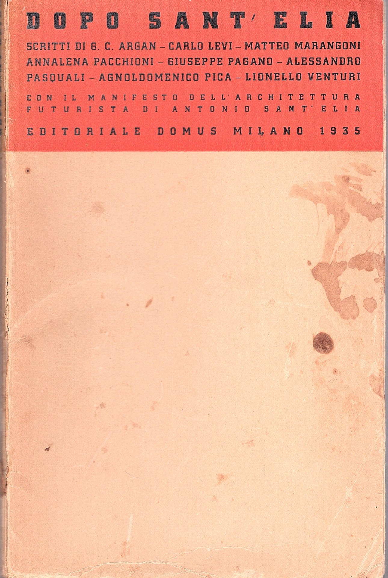 Dopo Sant' Elia. Scritti di G. C. Argan - Carlo Levi - Matteo Marangoni - Annalena Pacchioni - Giuseppe Pagano - Alessandro Pasquali - Agnoldomenico Pica - Lionello Venturi. Con il manifesto dell'architettura futurista di Antonio Sant'Elia