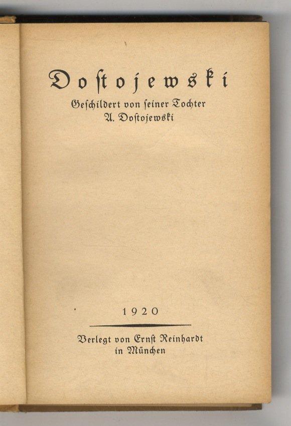 Dostoejewski geschildert von seiner Tochter. | Libri antichi e moderni | Dostoevskaja Ljubov Fedorovna.
