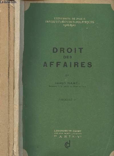 Droit des affaires - En 3 fascicules - "Université de Paris, Institut d'études politiques" 1946-1947 | Libri antichi e moderni | Hamel Joseph