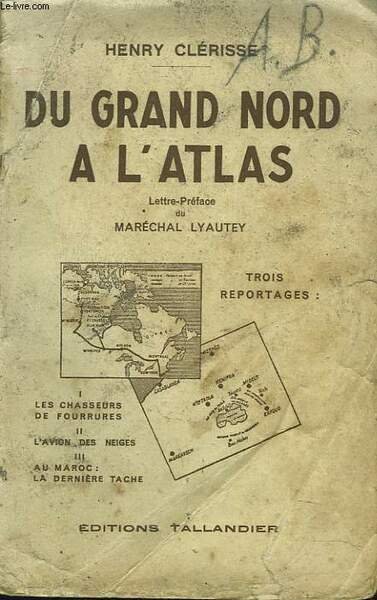 DU GRAND NORD A L'ATLAS. LETTRE-PREFACE DU MARECHAL LYAUTEY. Trois reportages : Les Chasseurs de fourrures, L'avion des neiges, Au Maroc : la dernière Tache. | Libri antichi e moderni | Henry Clerisse