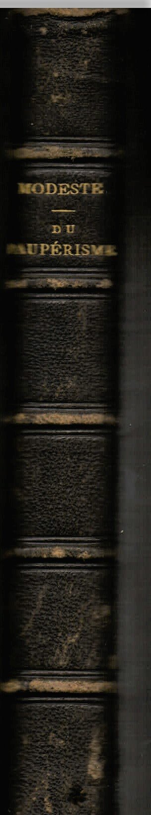In-8°, pp. (8), IV, 584, legatura del tempo p. pelle con titolo in oro su dorso a nervetti. Taglio di testa dorato, sguardie pavonate. Ex-libris ottocentesco papadopoli. Bell'esemplare. Edizione originale di questo classico dell'economia sociale, volto a indagare le cause della povertà in Francia e i rimedi possibili per contrastare tale piaga. Il Modeste (1818-1893) fu storico ed economista. Non in Einaudi.