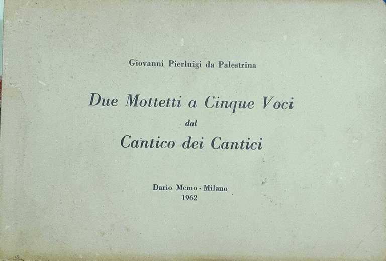 Due Mottetti a Cinque Voci dal Cantico dei Cantici | Libri antichi e moderni | Giovanni Pierluigi da Palestrina, ,Giovanni Pierluigi da Palestrina