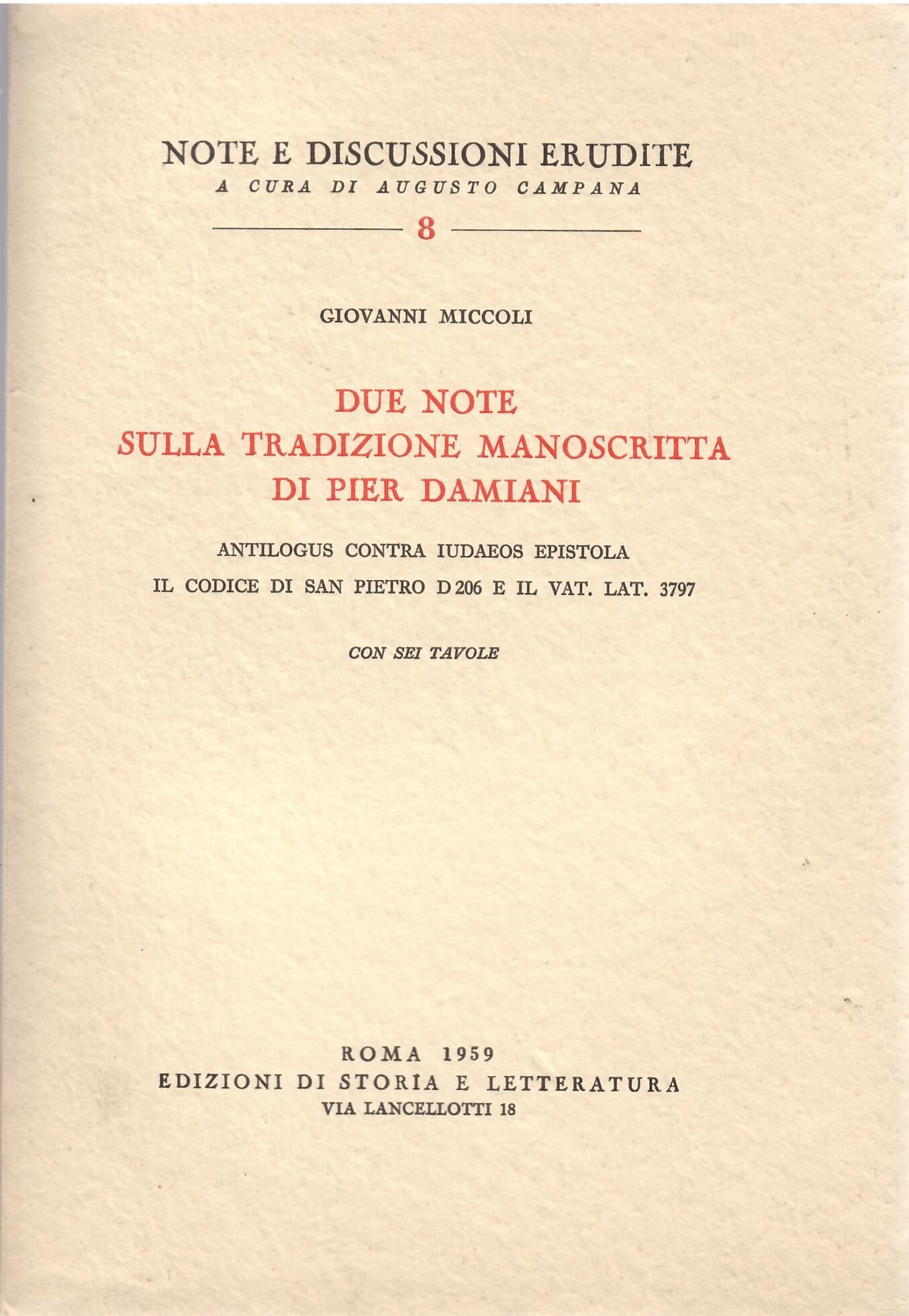 DUE NOTE SULLA TRADIZIONE MANOSCRITTA DI PIER DAMIANI | Libri antichi e moderni | Giovanni Miccoli