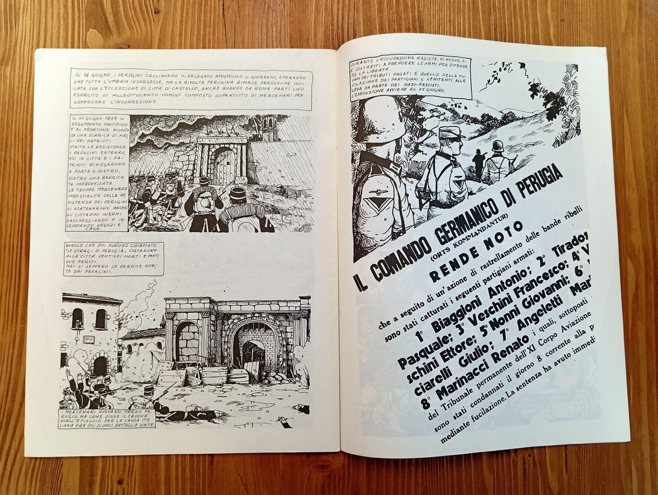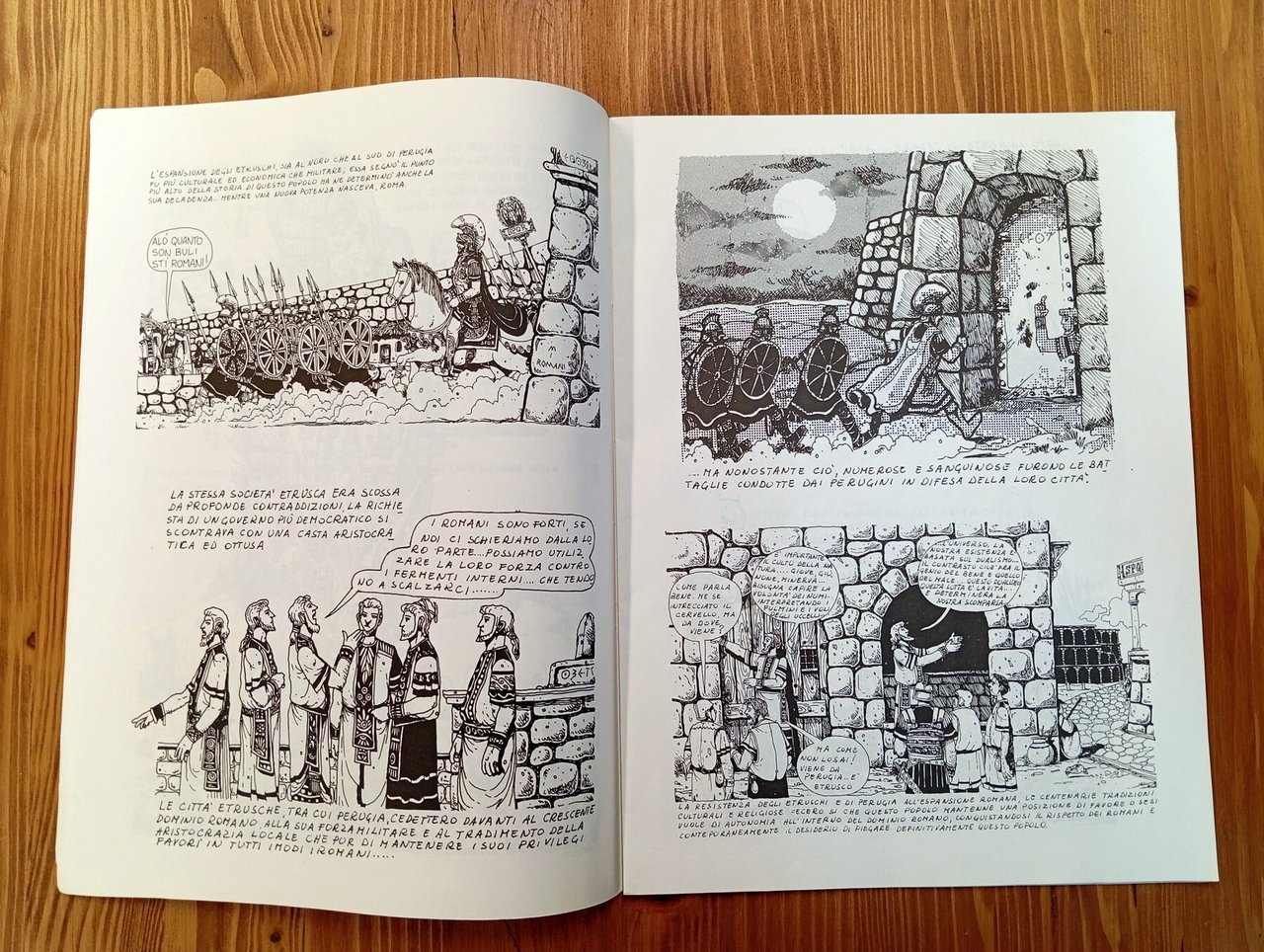 Volume edito in supplemento al notiziario "Città di Perugia" - Brossura rilegata a punto metallico, 32 pagine interamente illustrate con fumetti originali in nero. Disegni di M. Chiacchiera, soggetto e sceneggiatura di A. Peverini, grafica e fotolito di A. Todini. Esemplare in ottime condizioni di un'edizione non comune.