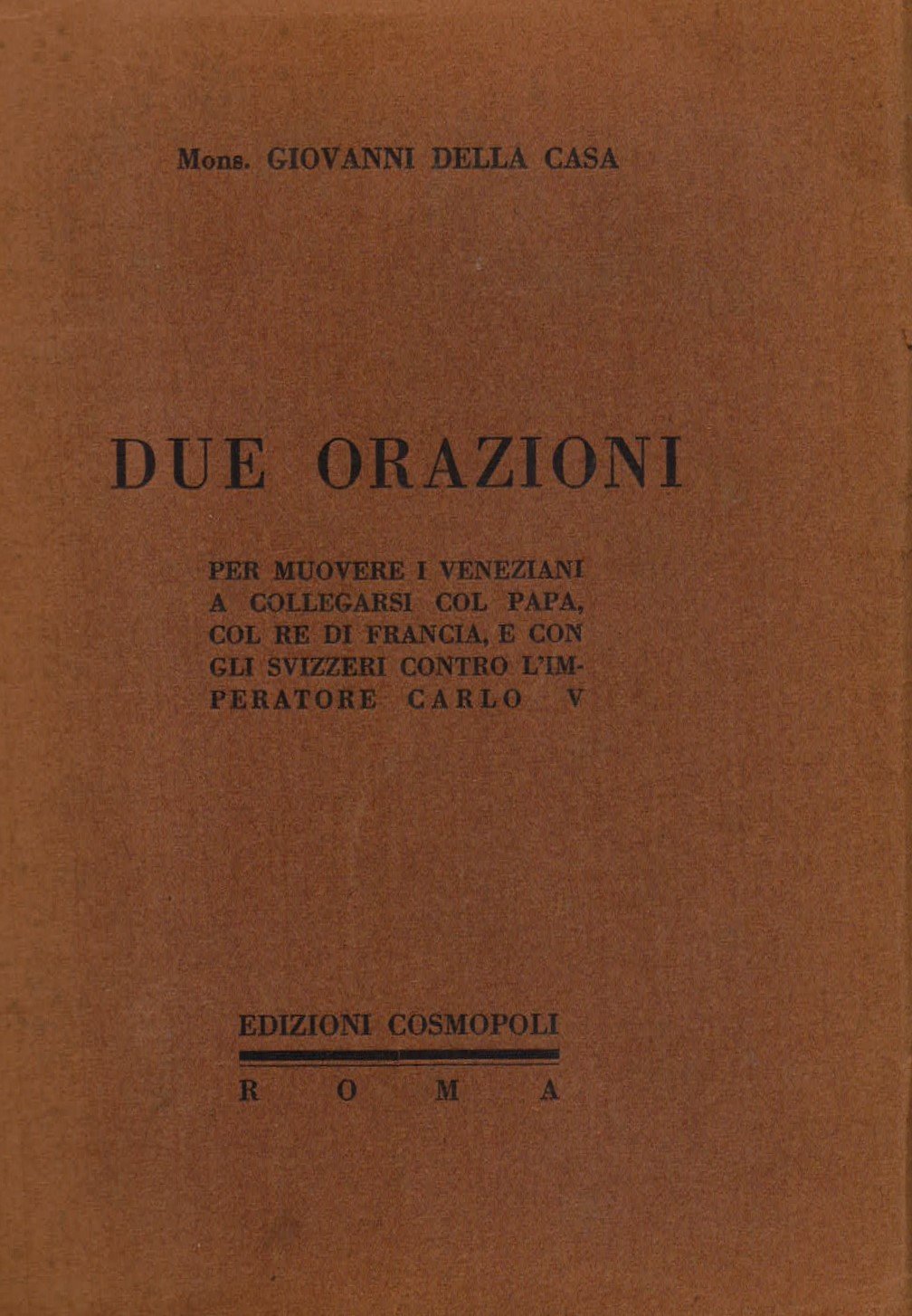Due orazioni per muovere i Veneziani a collegarsi col Papa, col Re di Francia, e con gli Svizzeri contro l' Imperatore Carlo V | Libri antichi e moderni | Della Casa Giovanni