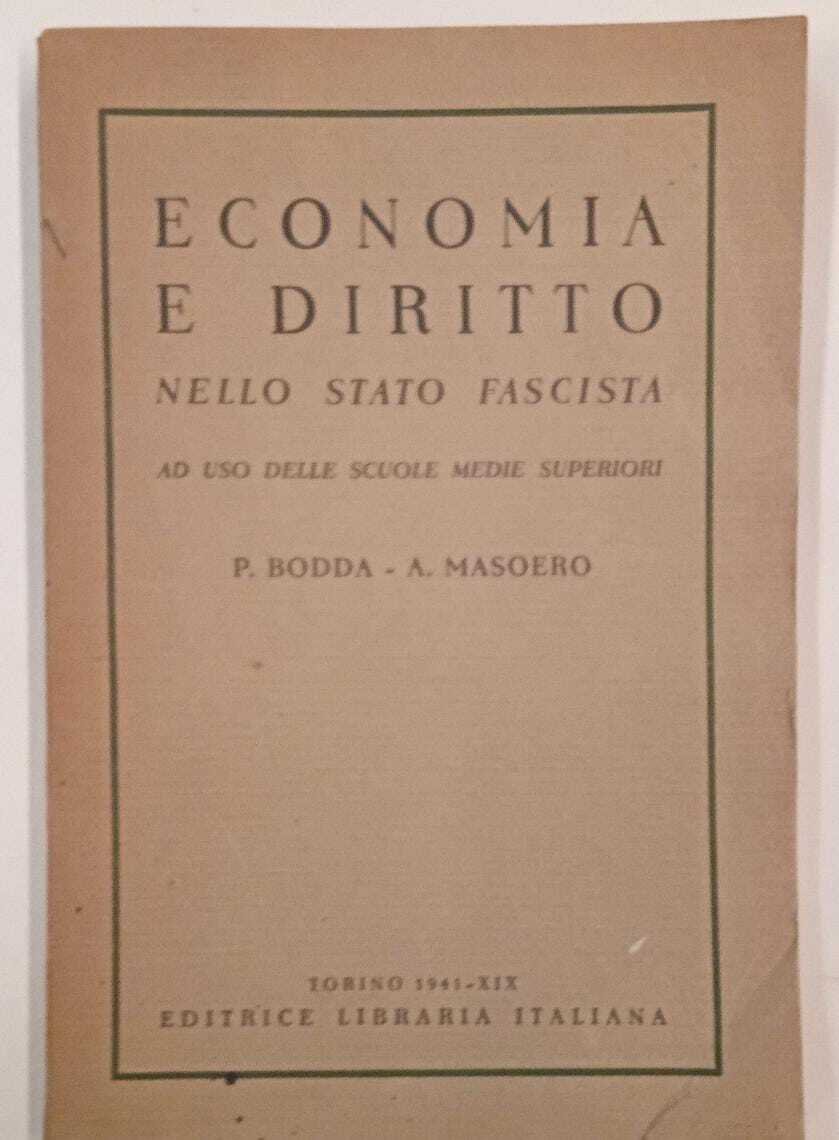Economia e diritto nello stato fascista. Ad uso delle scuole medie. | Libri antichi e moderni | P. Bodda - A. Masoero, ,P. Bodda - A. Masoero