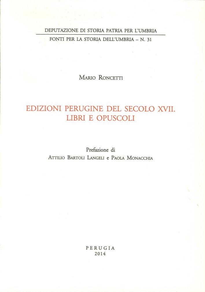 Edizioni Perugine del Secolo XVII. Libri e Opuscoli, Perugia, Dep. Storia Patria Umbria, 2014 | Libri antichi e moderni | Roncetti Mario