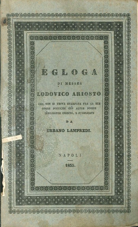 Egloga di Messer Lodovico Ariosto | Libri antichi e moderni |