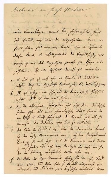 2 SS. auf Doppelblatt. Gr.-8vo. Mit eh. Adresse (Faltbrief). An einen Professor Walter, der augenscheinlich eine seiner Arbeiten begutachtet und manche Frage an ihn gestellt hatte, die hier nun beantwortet wird: "[.] Die abweichenden Jahreszahlen sind auch kein Druckfehler sondern gehen aus einer chronologischen Arbeit hervor die am Schluß des Bandes stehen wird: die Vorrede soll auf Sie verweisen [.] Um noch über die zugesandten Bogen eins zu bemerken: was bey dem agrarischen Rechte weggelassen ist [.] kommt als Beylage: es gehörte wohl nicht in den Körper des Werkes [.]". - Papierbedingt etwas gebräunt und mit einem kleinen Ausschnitt auf Bl. 2 durch Siegelbruch (dieses wohlerhalten).