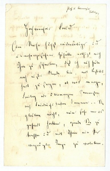 2 SS. auf Doppelblatt. Gr.-8vo. An einen namentlich nicht genannten Adressaten: "Eine Reihe höchst widerwärtiger und unvorhergesehener Zufälle nöthigt mich Ihnen zu schreiben, daß ich auch heute noch außer Stande bin, mit Bestimmtheit zu sagen, ob wir morgen, Freitag oder übermorgen Samstag nach Friedrichshafen kommen. - Sie glauben nicht, wie sehr wir uns gefreut haben, gerade Sie zu treffen und mit Ihnen ein paar vergnügte Tage zu verleben [.]". - Felix von Niemeyer leitete seit 1853 die Innere Station des Städtischen Krankenhauses in Magdeburg, wurde 1855 Professor der Pathologie und Therapie an der Universität Greifswald und wechselte 1860 in gleicher Funktion nach Tübingen. "Seit 1865 konsultierender Arzt des Königs von Württemberg, wurde er 1866 in den Adelsstand erhoben. Niemeyer war der Verfasser des 'Lehrbuchs der speciellen Pathologie und Therapie' (2 Bde., 1858-61), das in mehrere Sprachen übersetzt wurde" (DBE).