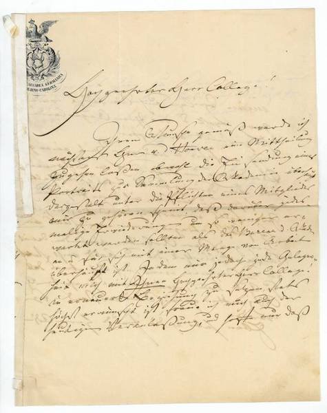 2½ SS. 4to. An einen Kollegen: "Ihrem Wunsche gemäß werde ich nächstens Herrn v. d Hoeder eine Mittheilung zugehen laßen, obwohl die Einsendung eines Portraits zur Sammlung der Akademie überhaupt dergestalt unter die Pflichten eines Mitglieds mir zu gehören scheint, daß darüber jedesmalige Erwiderung um so weniger erwartet werden sollten als das Bureau d. Akademie an u. für sich mit einer Menge von Arbeit überhäuft ist. Indem mir jedoch jede Gelegenheit mich mit Ihnen hochverehrter College! in erneute Beziehung zu setzen stets höchst erwünscht ist, freue ich mich auch der heutigen Veranlassung […]". - Carus, ein Freund Goethes, der auch als Psychologe, Naturwissenschaftler, Philosoph und - unter der Anleitung Caspar David Friedrichs - zuletzt auch als Maler hervortrat, war für die Theorie des Unbewußten im Seelenleben und für die Ausdruckskunde wegweisend.