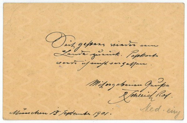 Eigenh. Postkarte mit U. | Libri antichi e moderni | Schleich, Carl Ludwig, Chirurg Und Schriftsteller (1859-1922).