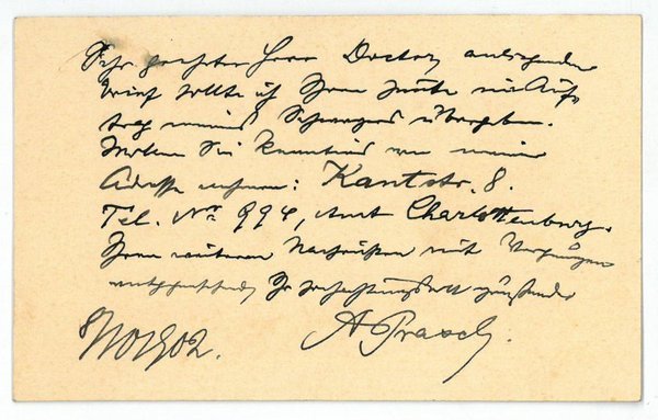 65 x 105 mm. anliegenden Brief sollte ich Ihnen heute im Auftrag meines Schwagers übergeben […]. - Prasch ging 1895 nach Berlin, wo er die Leitung des Berliner Theaters und 1897 auch die des Theaters des Westens übernahm. 1906 mußte er jedoch wegen finanzieller Schwierigkeiten seine Stellung aufgeben.