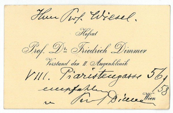 Eigenh. Visitenkarte. | Libri antichi e moderni | Dimmer, Friedrich, Ophthalmologe (1855-1926).