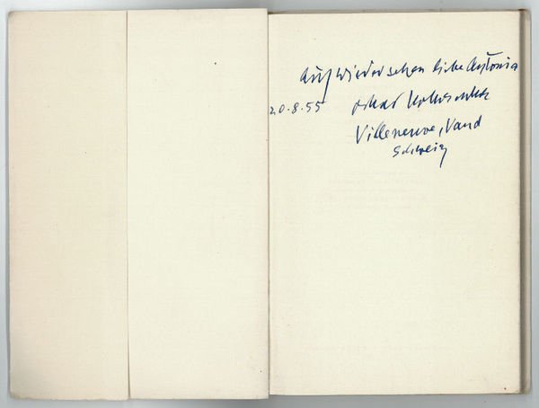 64 SS. (davon XVII einseitig bedr. Farbtafeln). Bedr. Originalbroschur. 8vo. Kokoschkas Widmung an Antonia Mangelmann, wohl ein ehemaliges Modell oder eine Schülerin an seiner Salzburger Sommerakademie, datiert vom 20. VIII. 1955.