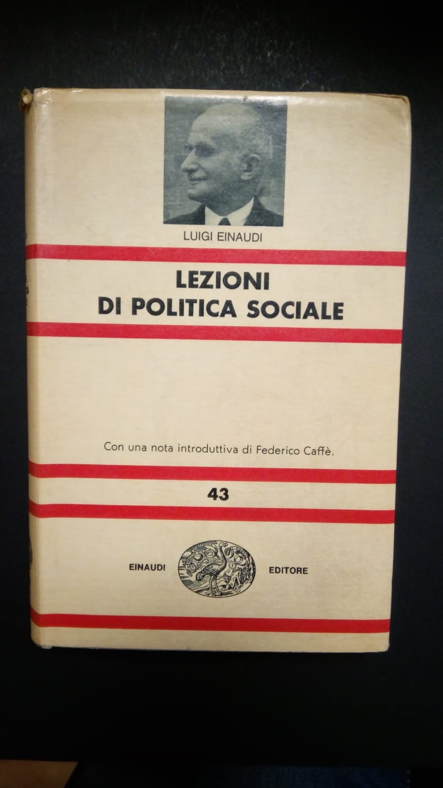 Einaudi Luigi, Lezioni di politica sociale, Einaudi, 1964 - I, in-16, cartonato telato con sovraccopertina, pp.335, nota introduttiva di Caffè Federico. Condizioni molto buone (lievi strappi di costa sulla sovraccopertina).