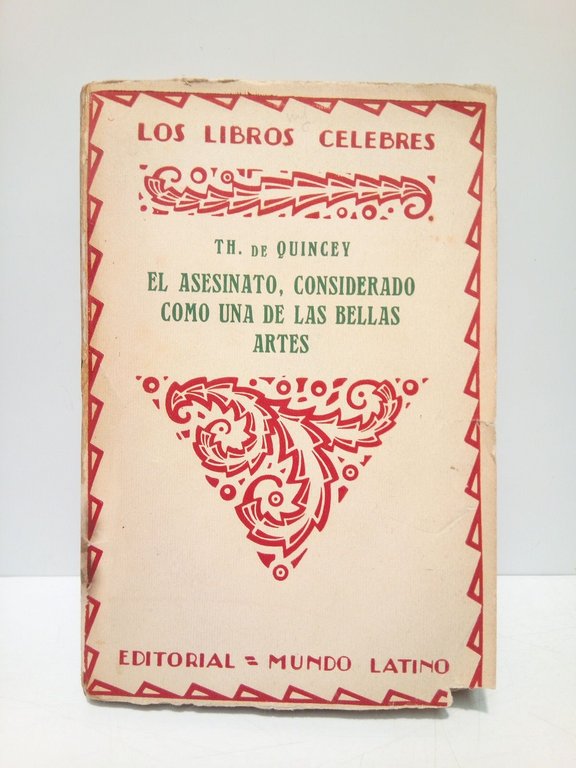 El asesinato, considerado como una de las bellas artes / Traducción, prólogo y notas de Eduardo Barriobero | Libri antichi e moderni | Quincey, Thomas De
