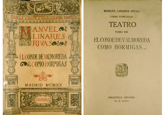 El conde de Valmoreda. Drama en tres actos y en prosa, inspirado en la idea de una obra del conde León Tolstoi. Como hormigas. Comedia en dos actos y en prosa. | Libri antichi e moderni | Linares Rivas, Manuel.