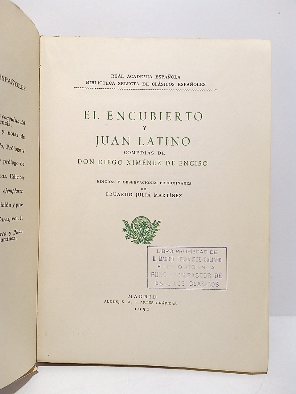 El encubierto; Juan Latino / Comedias de Don Diego Ximénez de Enciso; Edición y observaciones preliminares de Eduardo Juliá Martínez | Libri antichi e moderni | Ximenez De Enciso, Diego