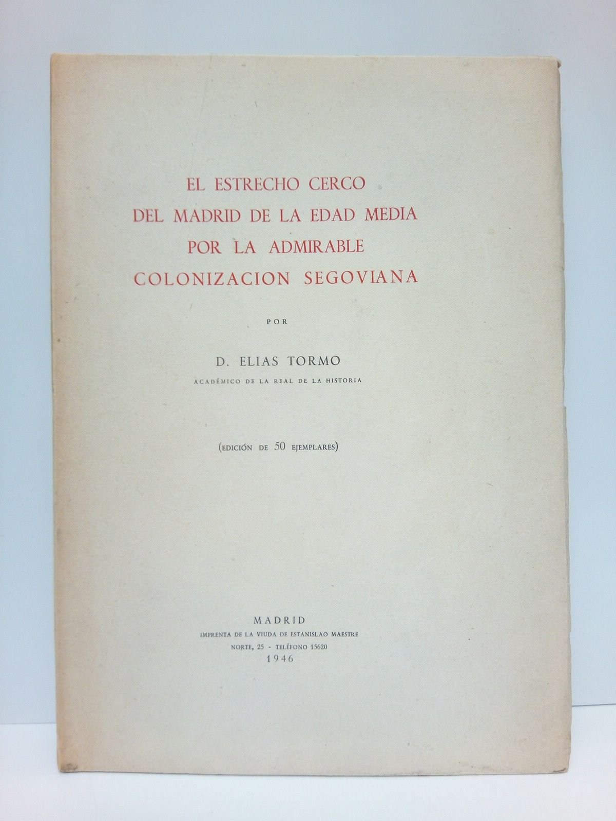El estrecho cerco del Madrid de la Edad Media por la admirable colonización segoviana | Libri antichi e moderni | Tormo, Elías