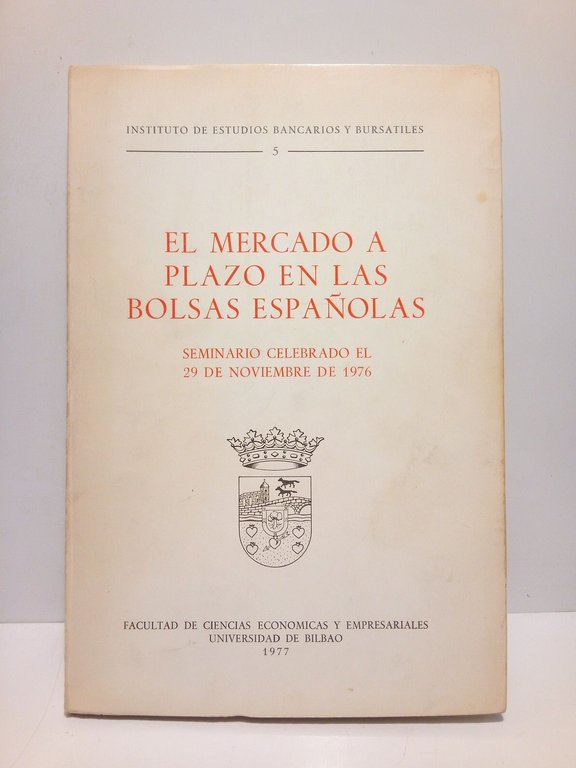 Bilbao [pero imp. en Valladolid]: Universidad de Bilbao, Fac. de Cienc. Económicas y Empresariales, 1977.- 201 p.; 4º (23,5 x 16 cm); Cartulina flexible Ed. con solapas.- (Instituto de Estudios Bancarios y Bursátiles. 5).- Intervienen gran número de especialistas en la materia.* En la hoja de cortesía tiene una dedicatoria autógrafa de alguno de los intervinientes en el seminario. HACIENDA, DERECHO FISCAL, MERCANTIL, BOLSA, BANCA, SEGUROS.