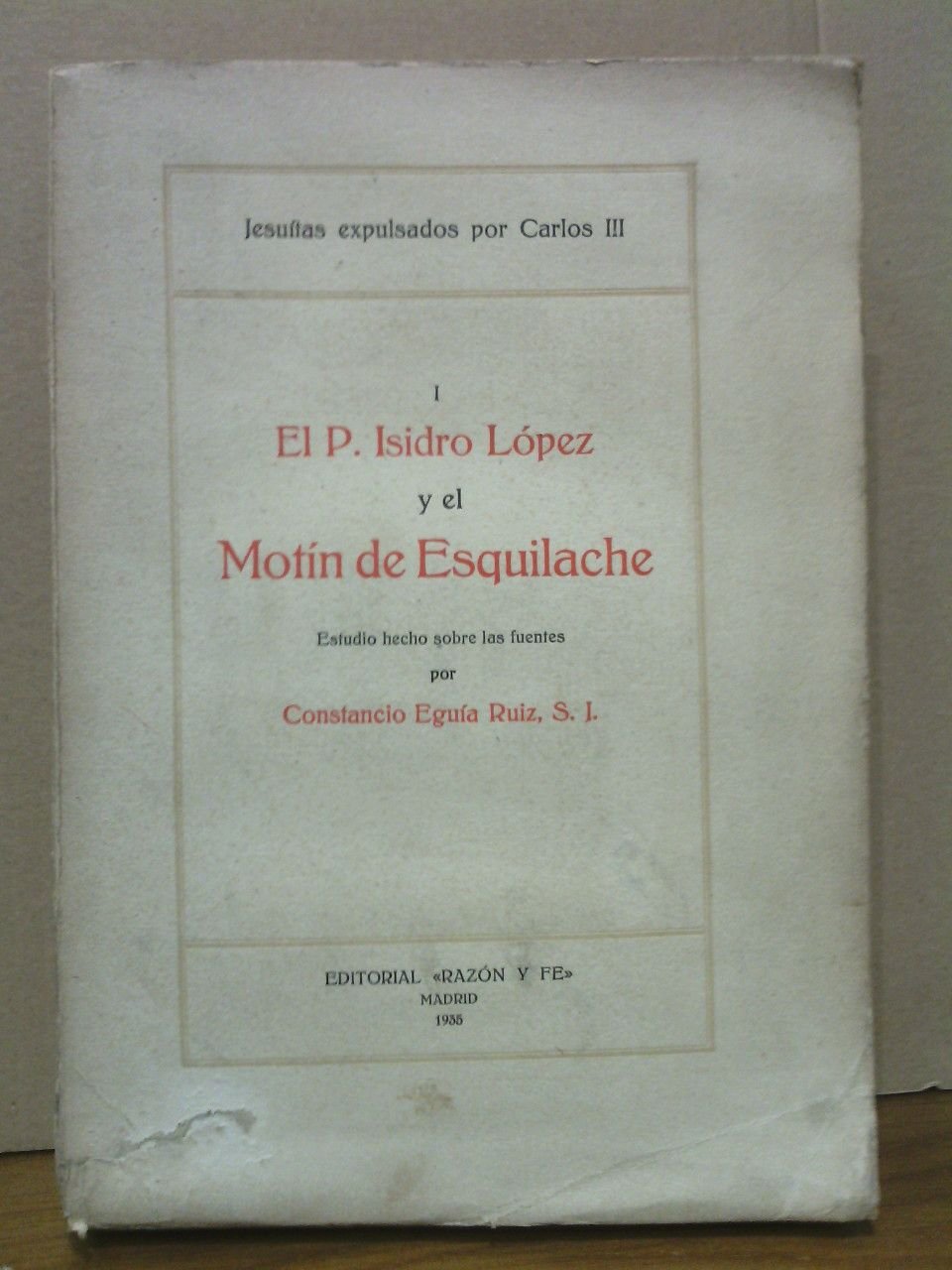 El P. Isidro López y el Motín de Esquilache / Estudio hecho sobre las fuentes, por Constancio Eguía Ruiz, S. J.