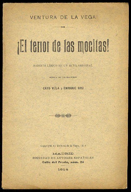 ¡El terror de las mocitas!. (Sainete lírico en un acto. Estrenado en el Teatro de Novedades de Madrid, el 28 de Abril de 1914) / Música de los maestros Cayo Vela y Enrique Brú | Libri antichi e moderni | Vega, Ventura De La