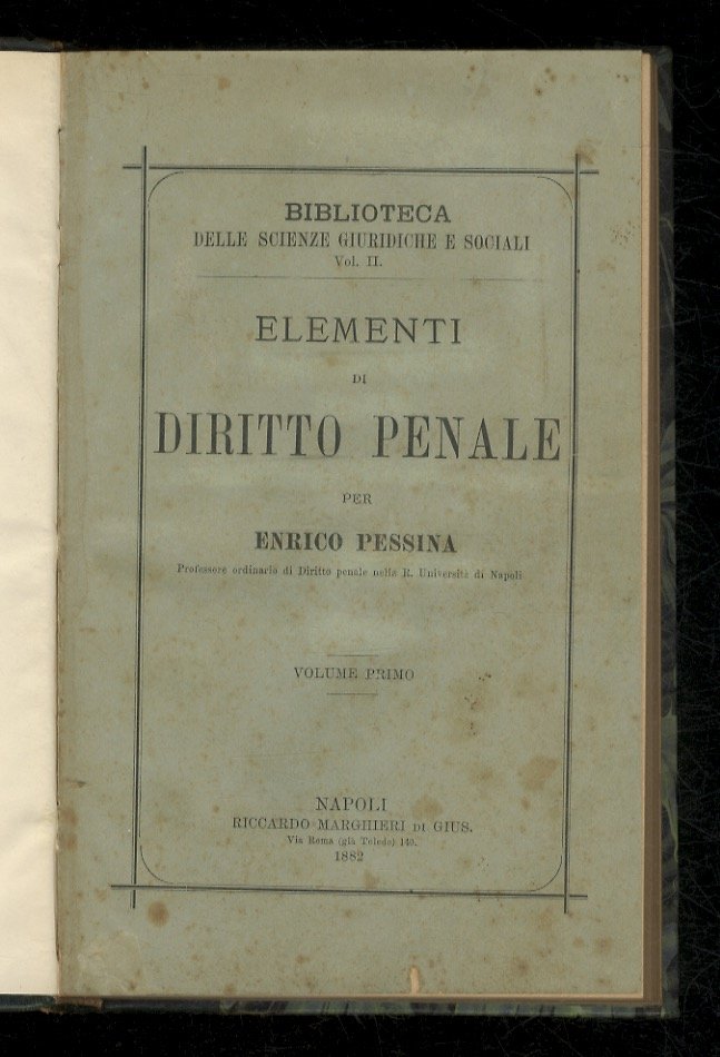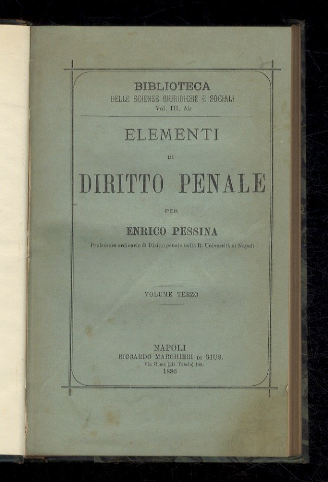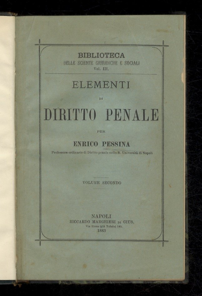 Elementi di diritto penale. | Libri antichi e moderni | Pessina Enrico.