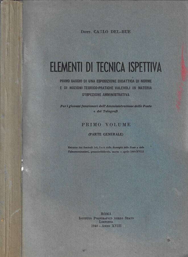 Elementi di tecnica ispettiva Primo volume (parte generale) | Libri antichi e moderni | Carlo Del-Bue