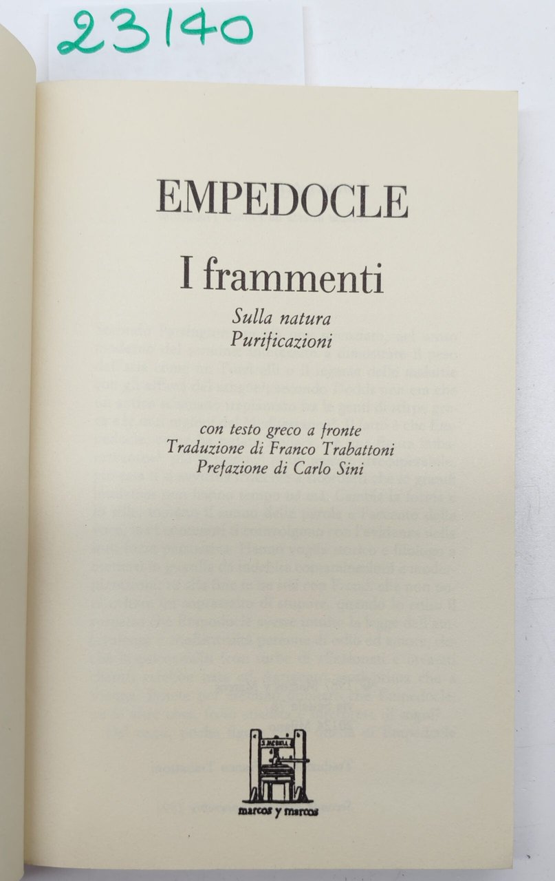 Empedocle I frammenti Marcos y Marcos 2° edizione 1991