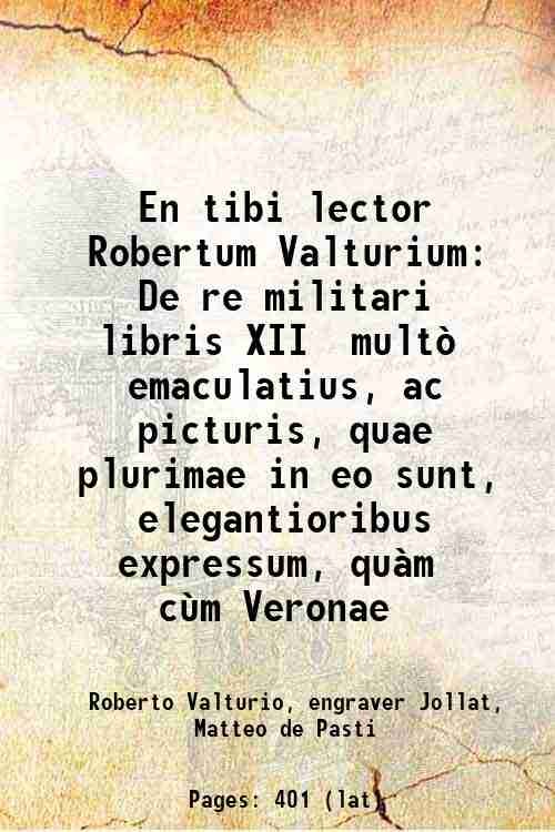 En tibi lector Robertum Valturium De re militari libris XII multÚ emaculatius, ac picturis, quae plurimae in eo sunt, elegantioribus expressum, qu‡m c˘m Veronae Volume plus notes 1534