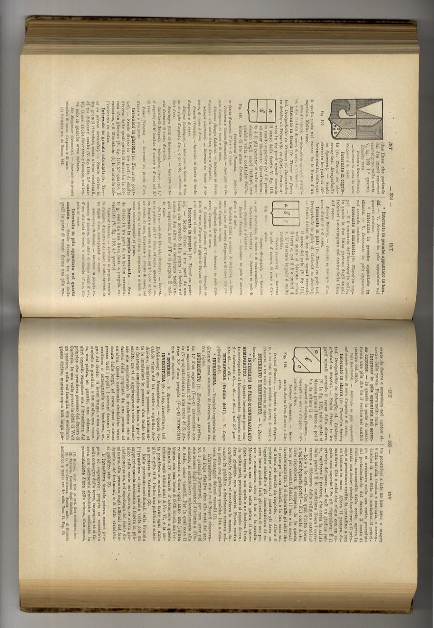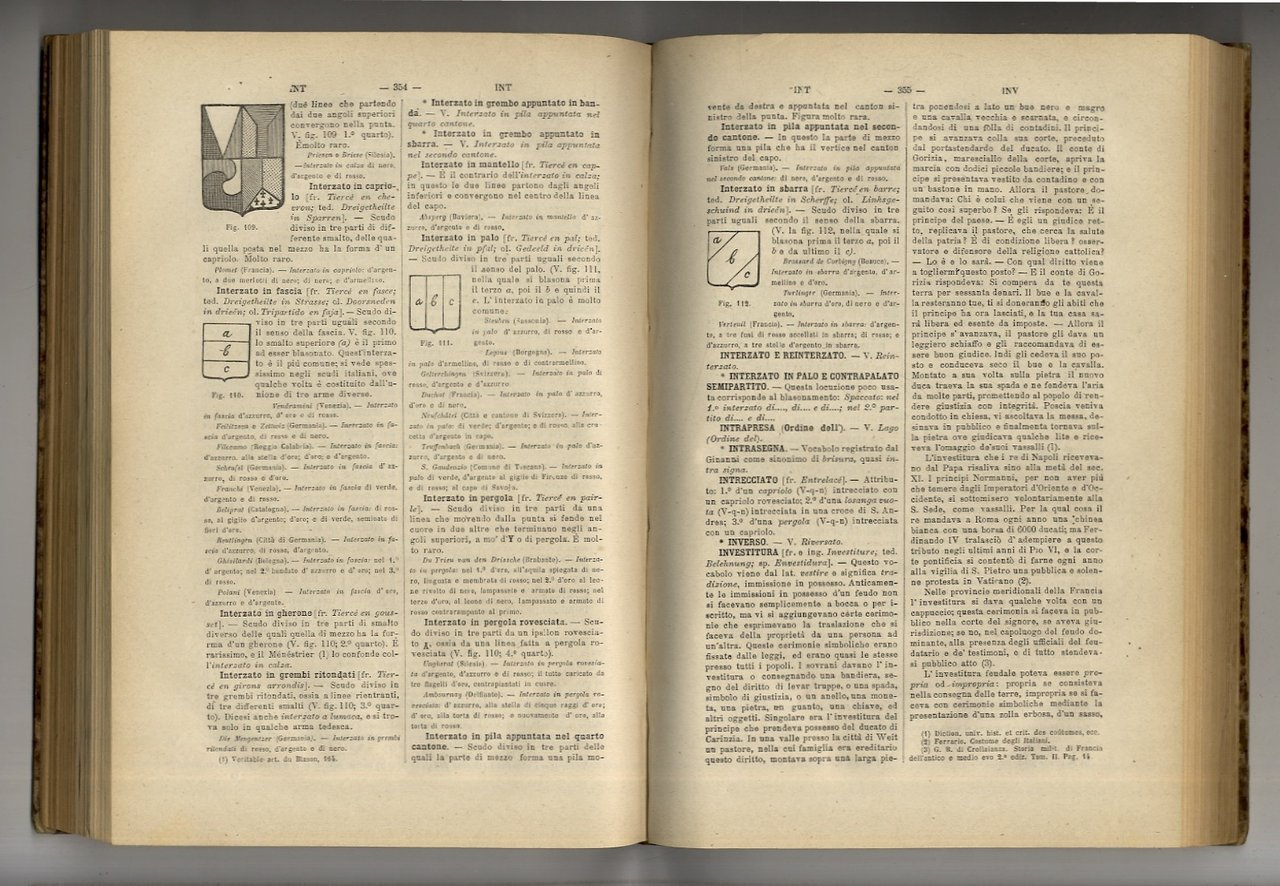 Pisa, presso la Direzione del Giornale Araldico, 1876 - 1877, in-8 grande, legatura coeva in mezza pelle, titolo e fregi in oro sul dorso, pp. 634. Con quattro tavole in litografia f.t. e numerose illustrazioni intercalate n.t. Prima edizione di uno dei principali repertori araldici italiani. Una leggera brunitura generale: esemplare più che buono.