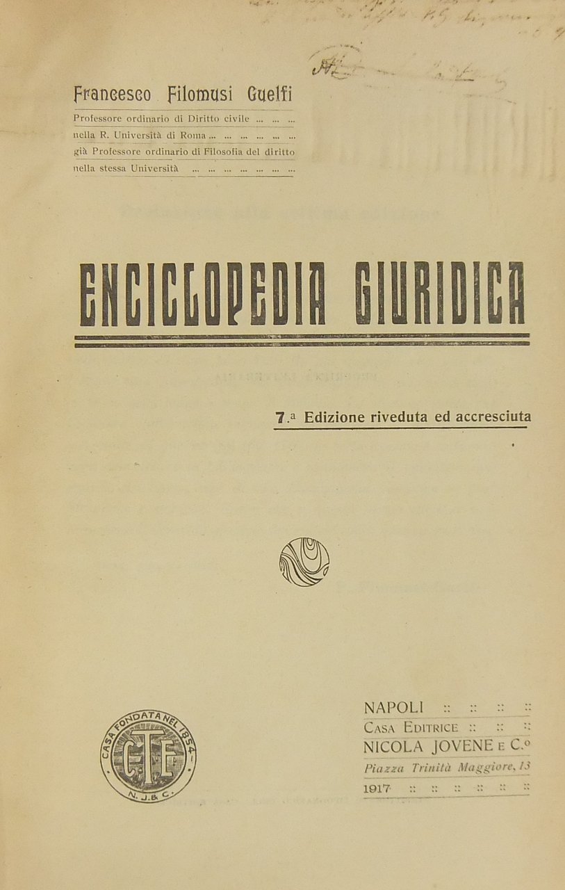 Enciclopedia giuridica | Libri antichi e moderni | Filomusi Guelfi Francesco (1842-1922)