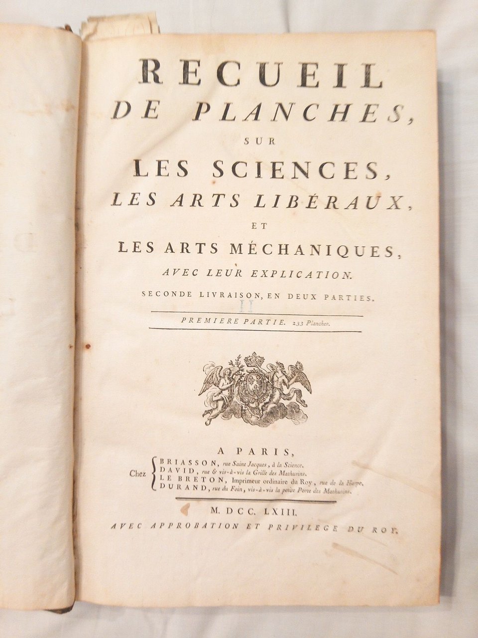 [Encyclopedie.]: RECUEIL DES PLANCHES, SUR LES SCIENCES, LES ARTS LIBERAUX, ET LES ARTS MECHANIQUES, AVEC LEUR EXPLICATION. Tomo II (Seconde Livraison, Seconde Partie, 1763) con 202 planchas repartidas en 25 secciones