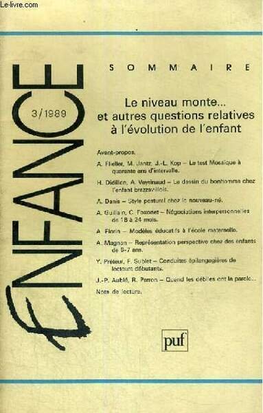 ENFANCE -3/1989 - LE NIVEAU MONTE . ET AUTRES QUESTIONS RELATIVES A L'EVOLUTION DE L'ENFANT | Libri antichi e moderni | H. Wallow