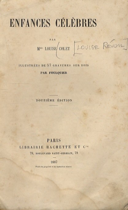 Enfances célèbres. (Pic de la Mirandole, Filippo Lippi, Agrippa d'Aubigné, Pascal et ses soeurs, Rameau, Pope, Franklin, Linné, Mozart, Winckelmann.) Illustrées de 57 gravures sur bois par Foulquier. 12ème édition. | Libri antichi e moderni | Colet Louise, M.Me (Louise Revoil).
