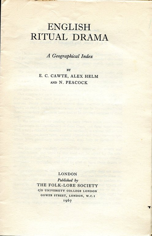 English Ritual Drama : A Geographical Index | Libri antichi e moderni | Cawte, E. C.& Helm, Alex & Peacock, N.
