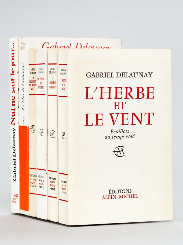 6 vol. dont 4 vol. in-12 et 2 vol. in--8 br., Editions Albin Michel, Paris, 1962, 1967, 1970, 1973, 1978 et 1976 Bel ensemble réunissant 6 ouvrages de l'écrivain Gabriel Delaunay (1907-1998), résistant et préfet, tous enrichis de belles dédicaces à l'écrivain bordelais Michel Suffran "grande révélation de notre Aquitaine, la vive sympathie d'un écrivain d'occasion conquis par ses rares mérites". Très bon état.