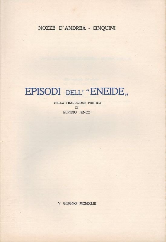 Episodi dell' 'Eneide', nella traduzione poetica di Elpidio Jenco. Nozze D'Andrea - Cinquini, 5 Giugno 1943. | Libri antichi e moderni | Jenco Elpidio.