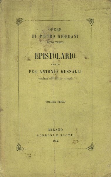 Epistolario di Pietro Giordani. Volume terzo | Libri antichi e moderni | Pietro Giordani